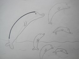 幾個孩子聊得正愉快,我拿出白紙隨手畫了弧線