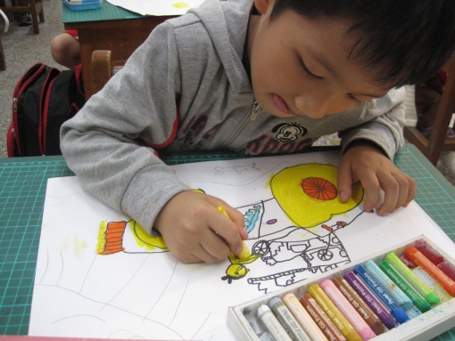 有同事看到我已經在畫了,問:「為什麼不讓孩子帶回去,請家長指導?』
