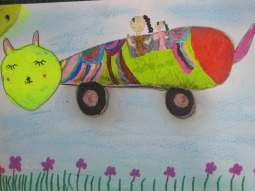 孩子拿到畫紙,就開始設計自己的『創意車』