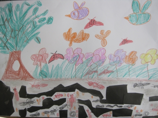 教了半天的昆蟲的六隻腳都要長在『胸』的部份,也畫給孩子看了