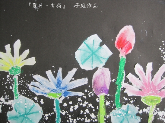 我喜歡讓孩子用撕畫的方式來表現荷花的美